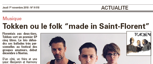 "Tokken est un trio Nantais, composé de Benjamin (chant, guitare), Antoine (Dobro, guitare) et Harmony (chœurs, guitare, et sœur de Benjamin !).