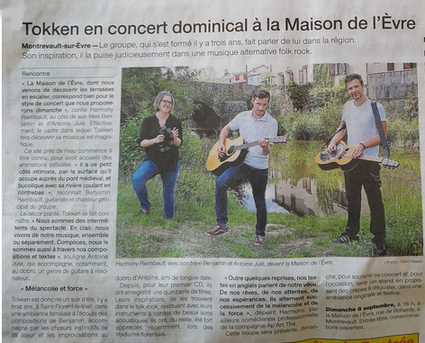 " Tokken, groupe créé à Mauges-sur-Loire, il y a trois ans, a vraiment fait un tabac dimanche après-midi. Les terrasses de la Maison de l'Evre n'ont pas désempli, tant la voix aux intonations graves de son chanteur, Benjamin Raimbault, et les accompagnements d'Harmony, sa soeur, et Antoine Julé, ont séduit le public. "